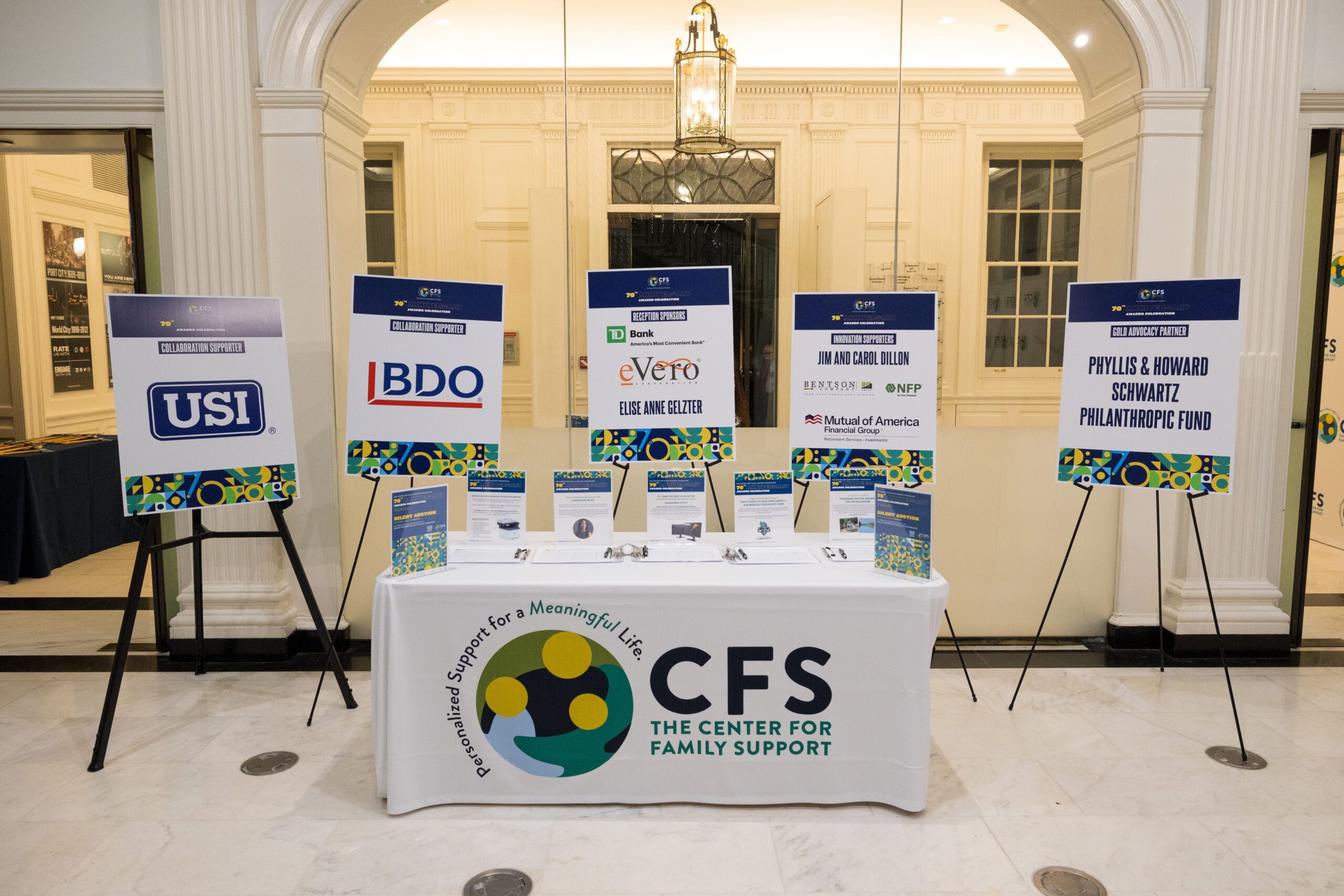 The evening was a great success, with CFS raising over $145,000 thanks to our generous sponsorships, donations, and contributions that continued to come in well after the evening concluded. We also were delighted that everyone had a great time at this special 70th Anniversary Award Celebration! Our wonderful guests enjoyed a new format, great food and beverages, a special exhibit, silent auction, and a moving program celebrating CFS’ history as innovators supporting individuals with intellectual and developmental disabilities.