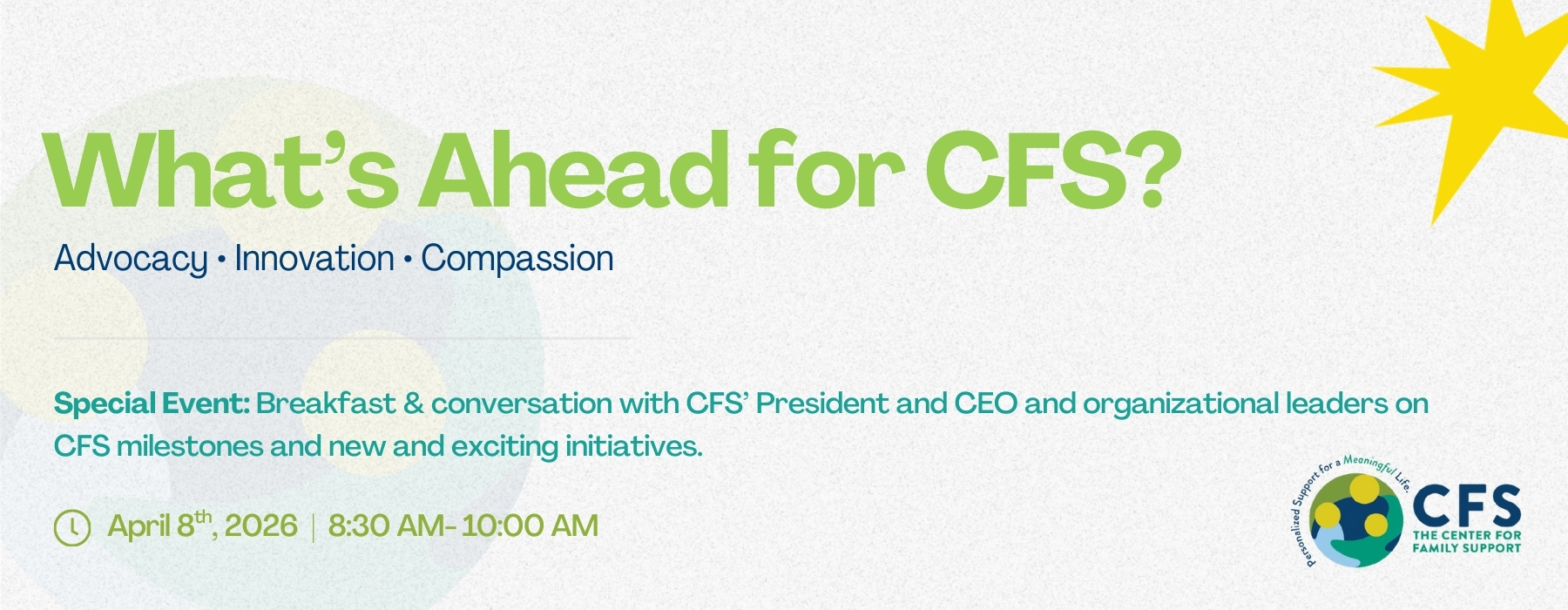 CFS is ever-growing, innovating, and listening intently—to the individuals, families, and partners we work with. Our mission is inspired by community, creativity, and service. We invite you to join us in the work ahead and help shape what’s possible together.